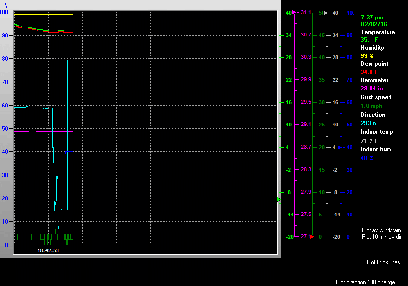 | Windchill Temperature | 35.1°F | Maximum Gust (last hour) | 4.6 mph at: 6:52PM |